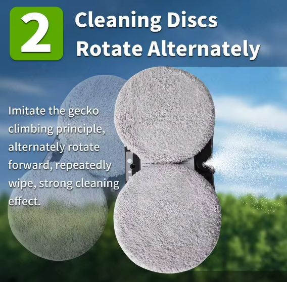 It attaches to the window using a powerful vacuum system and moves smoothly across the surface, removing dust, dirt, water marks, and rain stains